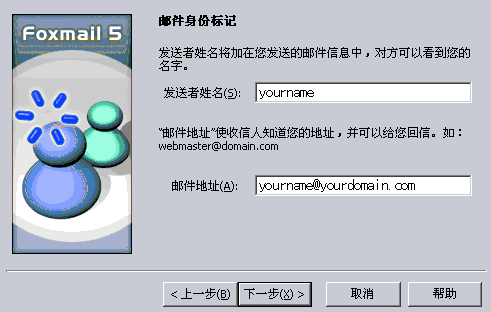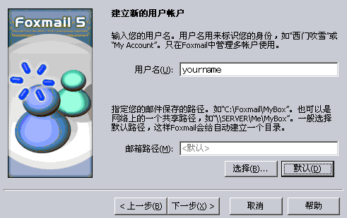 1. 點(diǎn)擊“帳戶”菜單中的“新建”,進(jìn)入 Foxmail 用戶向?qū)А?BR>2. 點(diǎn)擊“下一步”,輸入您的“用戶名”。