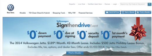 在設(shè)計(jì)橫幅廣告的時(shí)候,你應(yīng)該確保廣告所使用的顏色、字體和文字與被指向的網(wǎng)站有所統(tǒng)一,這樣用戶在被重新指向的時(shí)候,才不會(huì)無所適從。大眾汽車在這方面就做的非常好,他們?cè)诟鞣N橫幅廣告中使用了類似的顏色和字體設(shè)計(jì),給瀏覽者提供了較高的品牌辨識(shí)度。